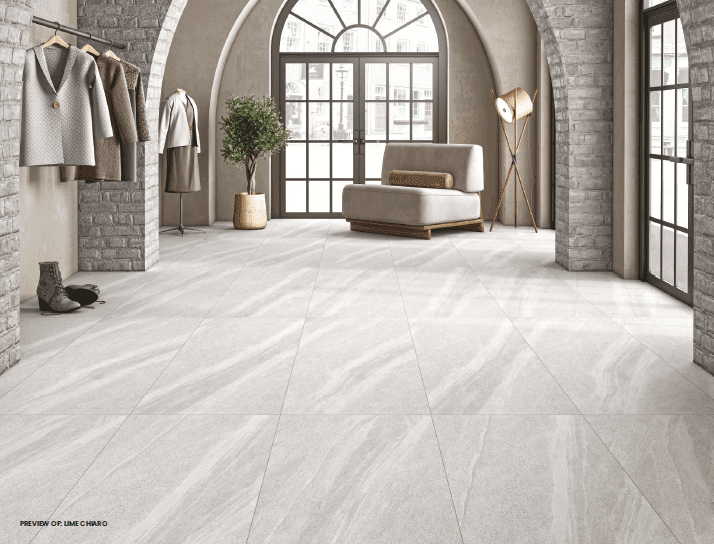 - High Durability & Strength: Showrooms, offices, and other heavily trafficked spaces, such as corridors and lounges, will seamlessly merge with the Lime Avorio Full Body Tile.