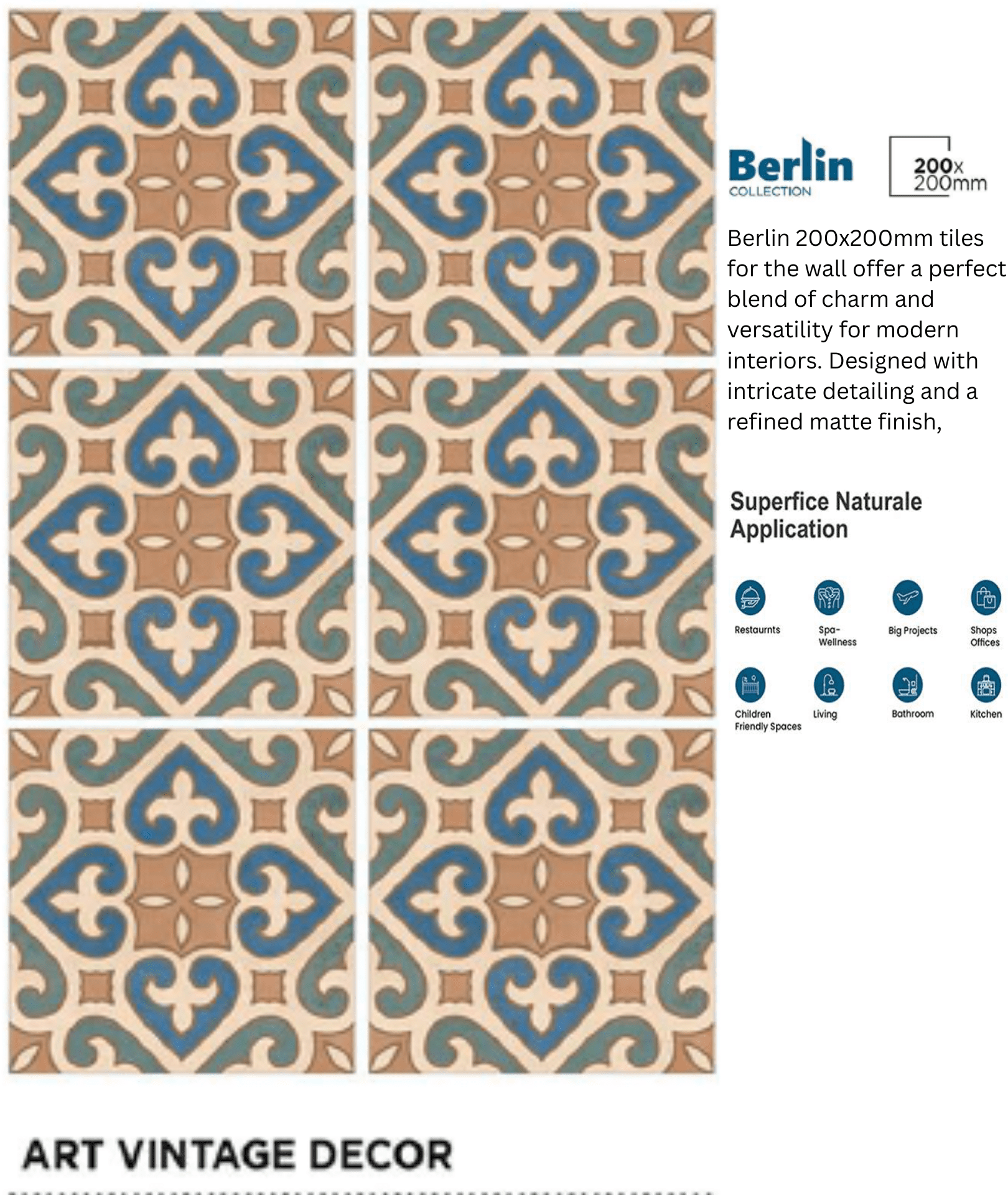ART Vintahe Décor Berlin 200x200mm Tiles for Walls