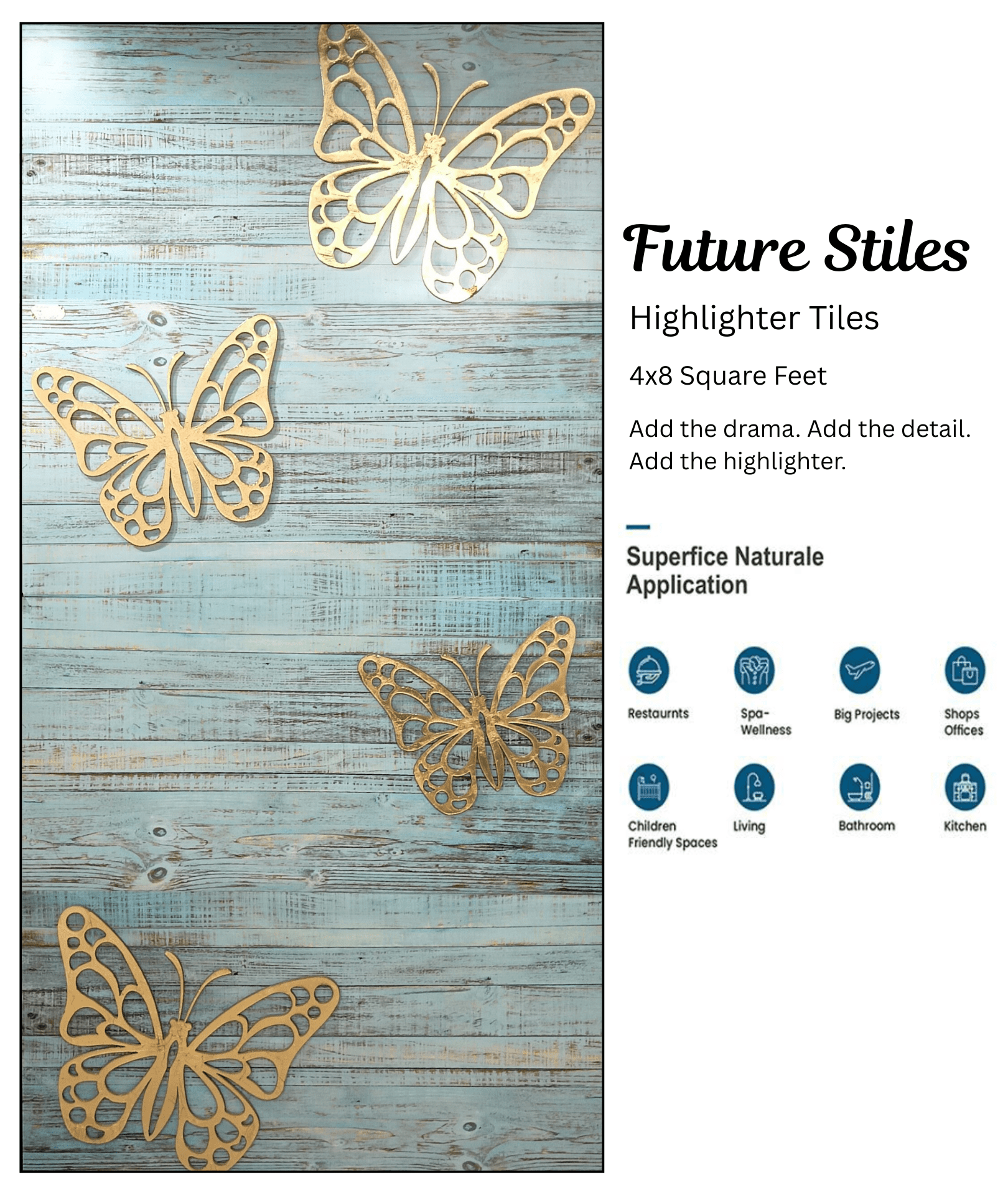Embrace true luxury with our striking Highlighter Tiles for Walls. They are meticulously made to elegantly highlight the artistry of your interior spaces. The intricate artistry, gentle luminescence, and tasteful textures render them ideal for enhanced walls and ornamental locations. In the living room, dining area, and even the bathroom, they strongly define class and richness to the ambience of the space. Future Stiles tiles are made with beautiful durability in mind, as well as easy maintenance. Enjoy the luxury that lasts for years and shows in every corner.
