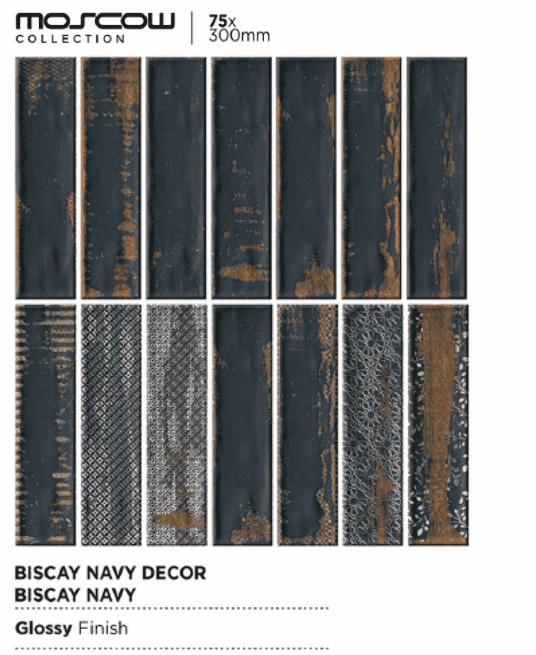 Biscay Navy Subway Tiles 75x300mm: Add European Sophistication with Moscow Collection