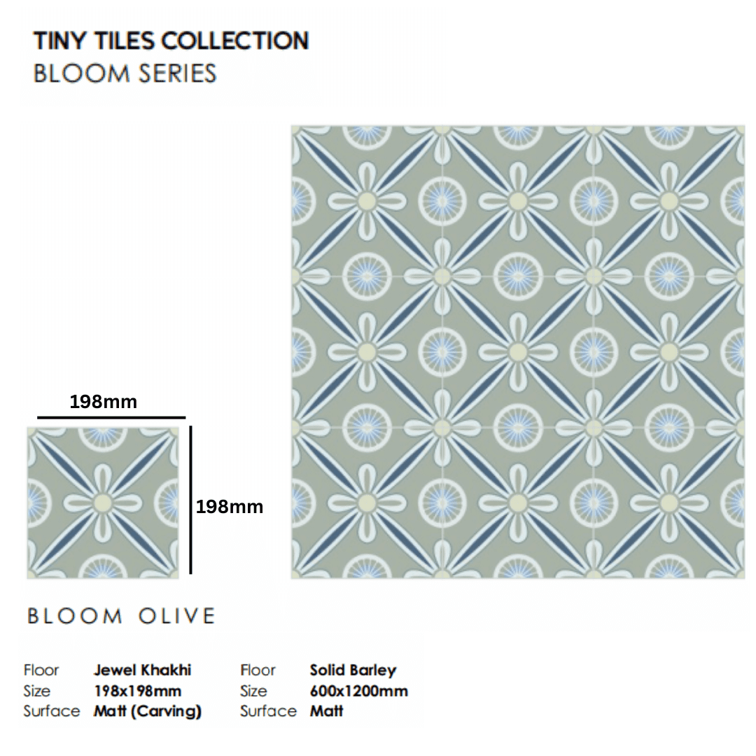 Bloom Olive 198x198mm Printed Tiles for Floor | Tiny Tiles Collection
