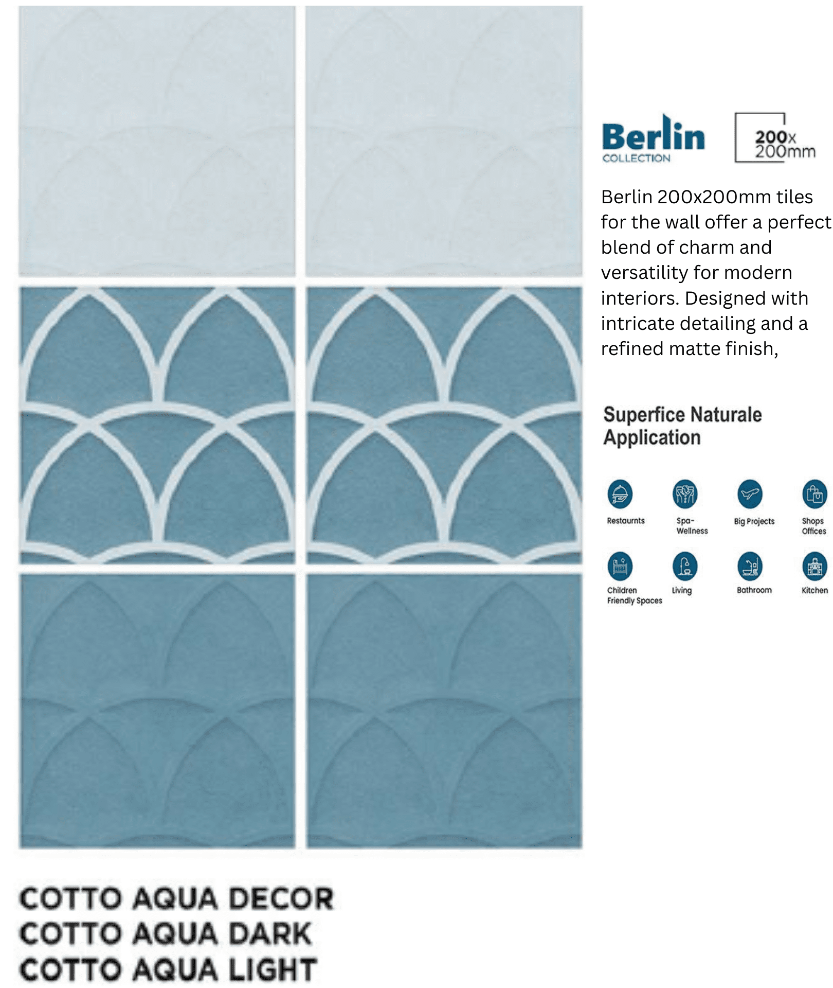 Cotto Aqua Décor Berlin 200x200mm Tiles for Walls