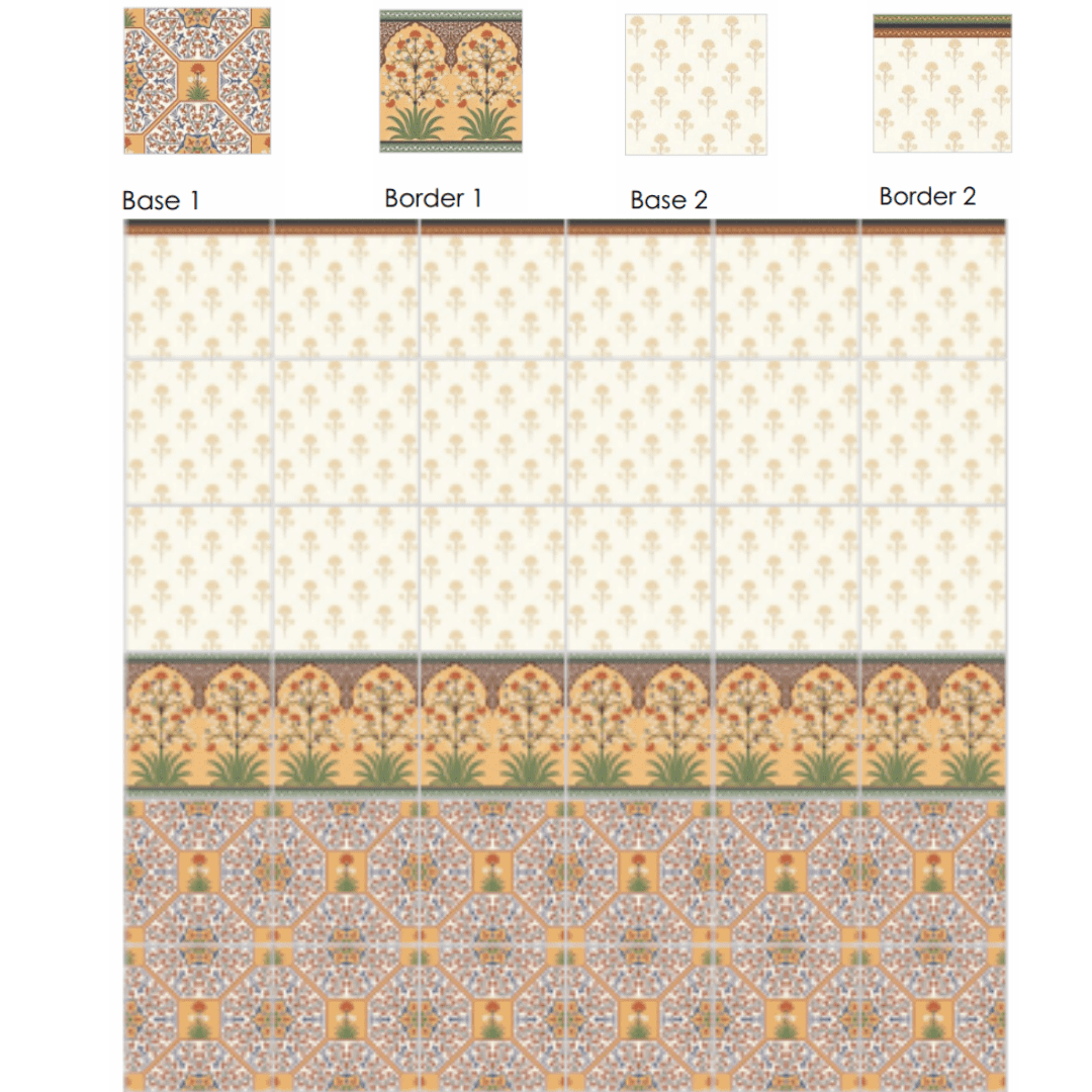 Damask Lotus 198x198mm Printed Tiles for Floor | Tiny Tiles Collection