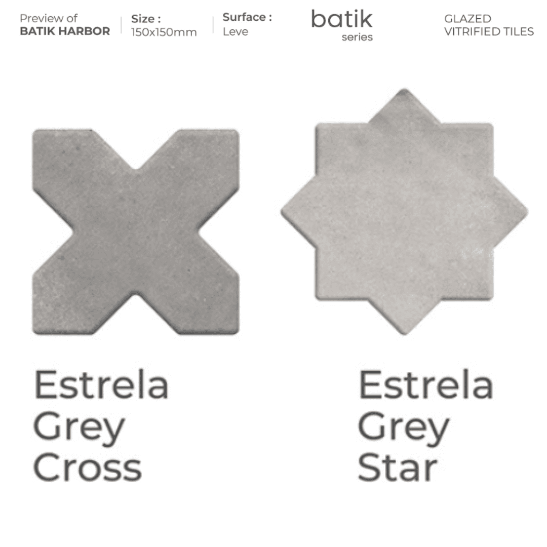 Estrela Grey Star & Cross 150x150mm Tiles for Floor and wall – Interlocking Tiles