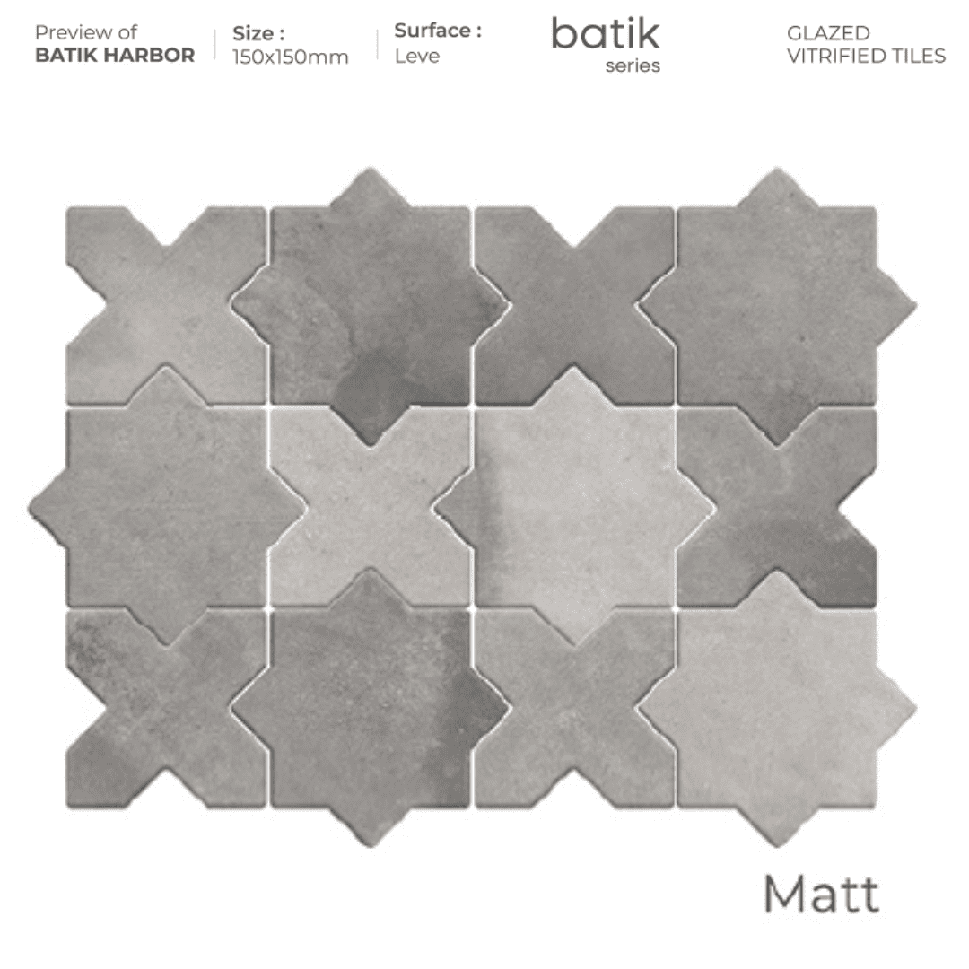 Experience artistic living with Batik Essence Tiles. Designed in the versatile 150x150mm size, it allows for different patterns and compositions. Showcasing fine batik designs and blending soft, earthy shades with geometrical shapes, these tiles bring elegance and artistry to both contemporary and traditional spaces. Batik Essence tiles give a warm, handcrafted touch to stylish floors and feature walls as they become more inviting. Designed as tiles, they are stain and moisture-resistant. Batik Essence tiles are ideal for artists to place in valuable floors and walls, and bring artistry to their surfaces