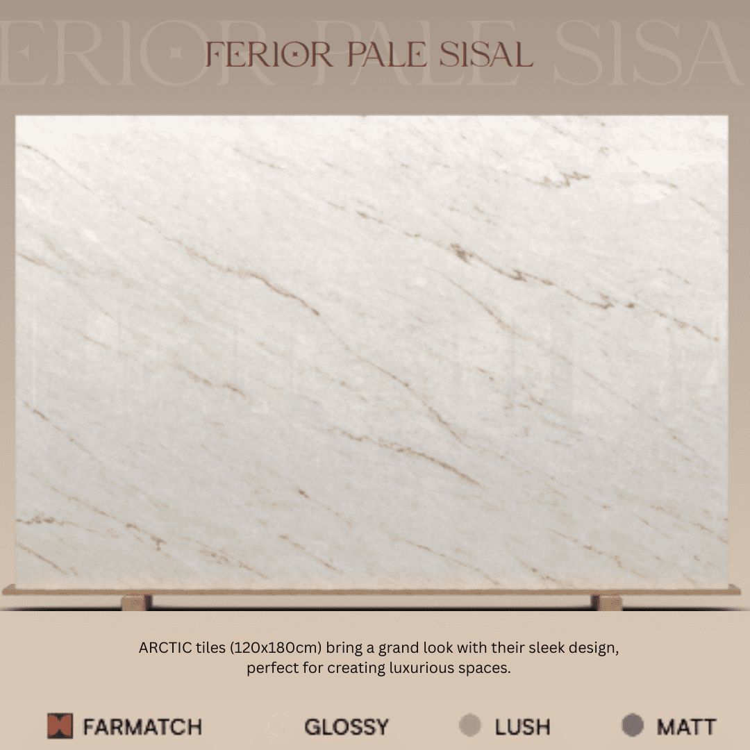 Enhancing the luxurious look of wider spaces is achievable with ARCTIC 1200x1800mm tiles. floor tiles with wider spaces. The slabs restrain the number of grout lines that need filling. Fewer divisions mean uniformity. Wrapping yourself in the artistic genealogy of each of the tiles is as pleasurable as their easy maintenance. The sophistication of the tiles transforms the atmosphere of the space, be it residential, corporate, or commercial.