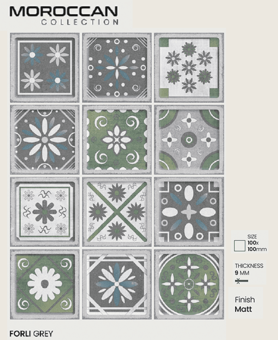Forli Grey 100x100mm Moroccan Tiles: A Statement of Style and Heritage