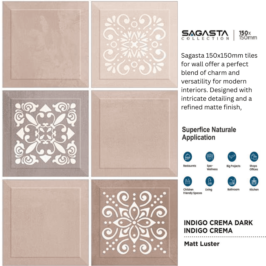 Indigo Crema Dark Sagasta 150x150mm Tiles for Walls