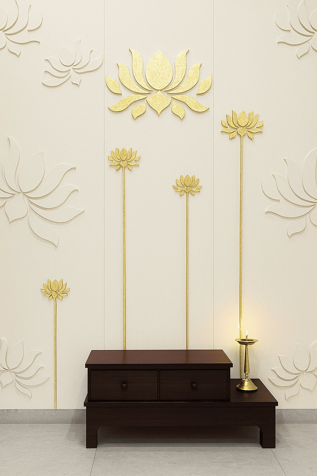 Enhance the peaceful atmosphere of your home with Future Stiles Pooja Room Walls Tiles. The lotus flower designs & decorations evoke tranquility and divinity. Each tile has carefully designed light refractions with embossed patterns that will create warmth and depth to your space. These tiles blend luxury with spirituality & are ideal for meditation corners or devotional interiors. The lotus designs & metallic finishes can inspire devotion & new beginnings. The lotus design tiles are durable, constructed with care and attention to detail; a perfect fusion of service and artistry for a prayerful atmosphere.