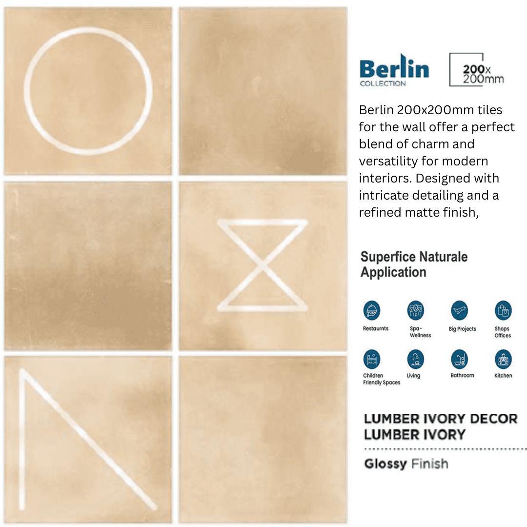 Lumber Ivory Décor Berlin 200x200mm Tiles for Walls