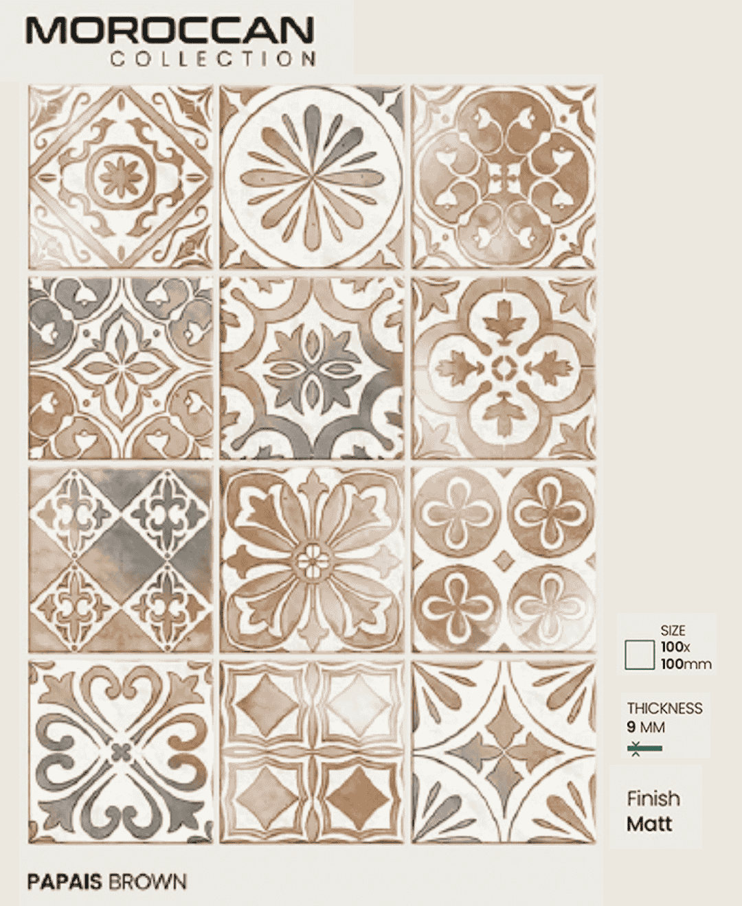 Papais Brown 100x100mm Moroccan Tiles: A Statement of Artistic Sophistication