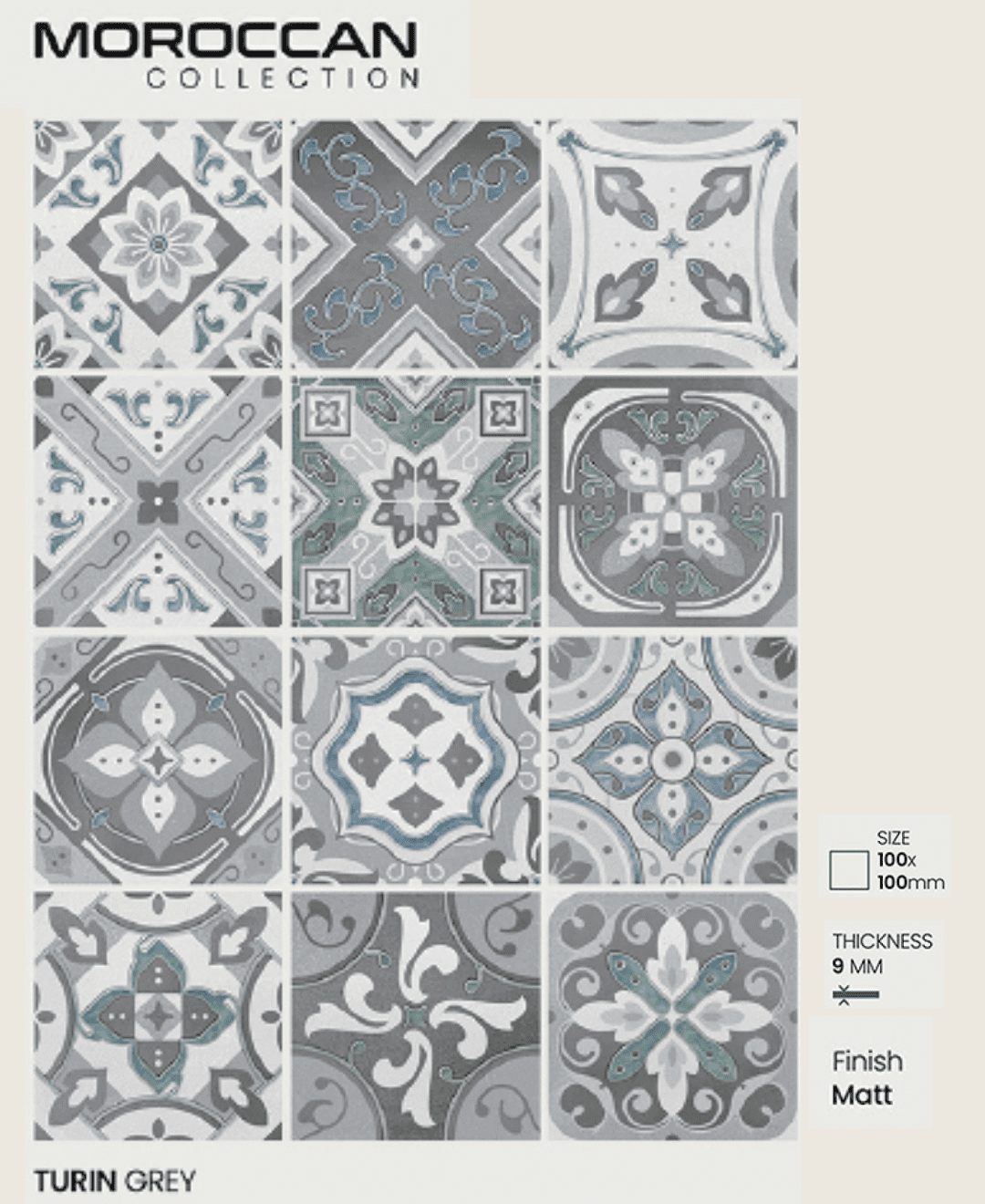 Turin Grey 100x100mm Moroccan Tiles: The Perfect Blend of Art and Function